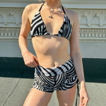 Your new go-to for festivals, beach days, or just a cute warm weather look. This two-piece set includes a triangle top and high-waisted ruched shorts (or skirt) designed to flatter and hug the body. Made from soft, stretchy fabric that moves with you — perfect for dancing, lounging, or wherever the day takes you.