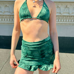 Your new go-to for festivals, beach days, or just a cute warm weather look. This two-piece set includes a triangle top and high-waisted ruched shorts (or skirt) designed to flatter and hug the body. Made from soft, stretchy fabric that moves with you — perfect for dancing, lounging, or wherever the day takes you.