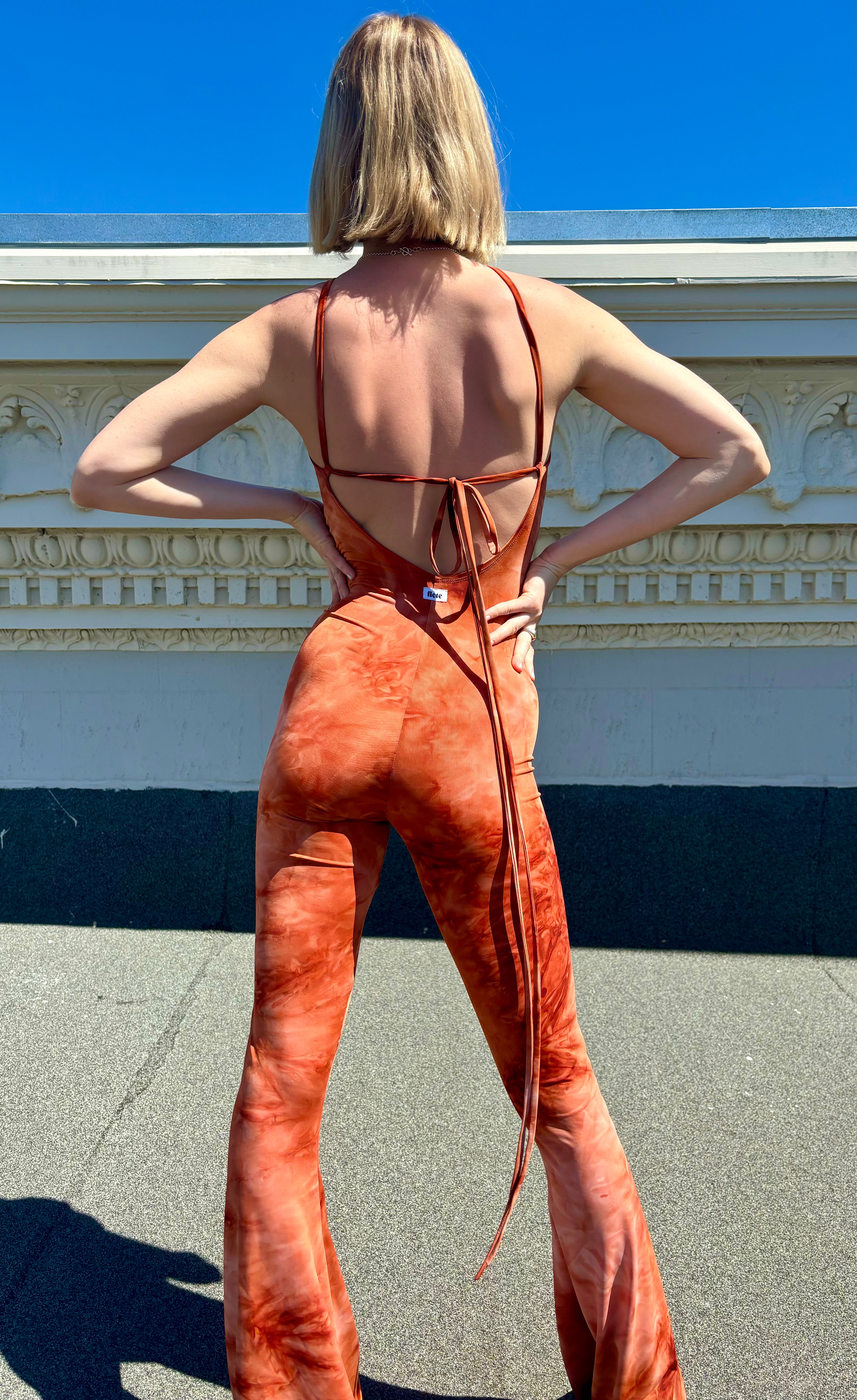 The perfect jumpsuit for a festival or night out. Stretchy, sexy, form fitting, but so comfortable! With tie straps in back to adjust to your liking. We keep the straps extra long if you want to get creative with how you wrap them up around the waist. Stainless steel hardware rings won't tarnish in the wash. We recommend washing on cold and laying flat to dry.