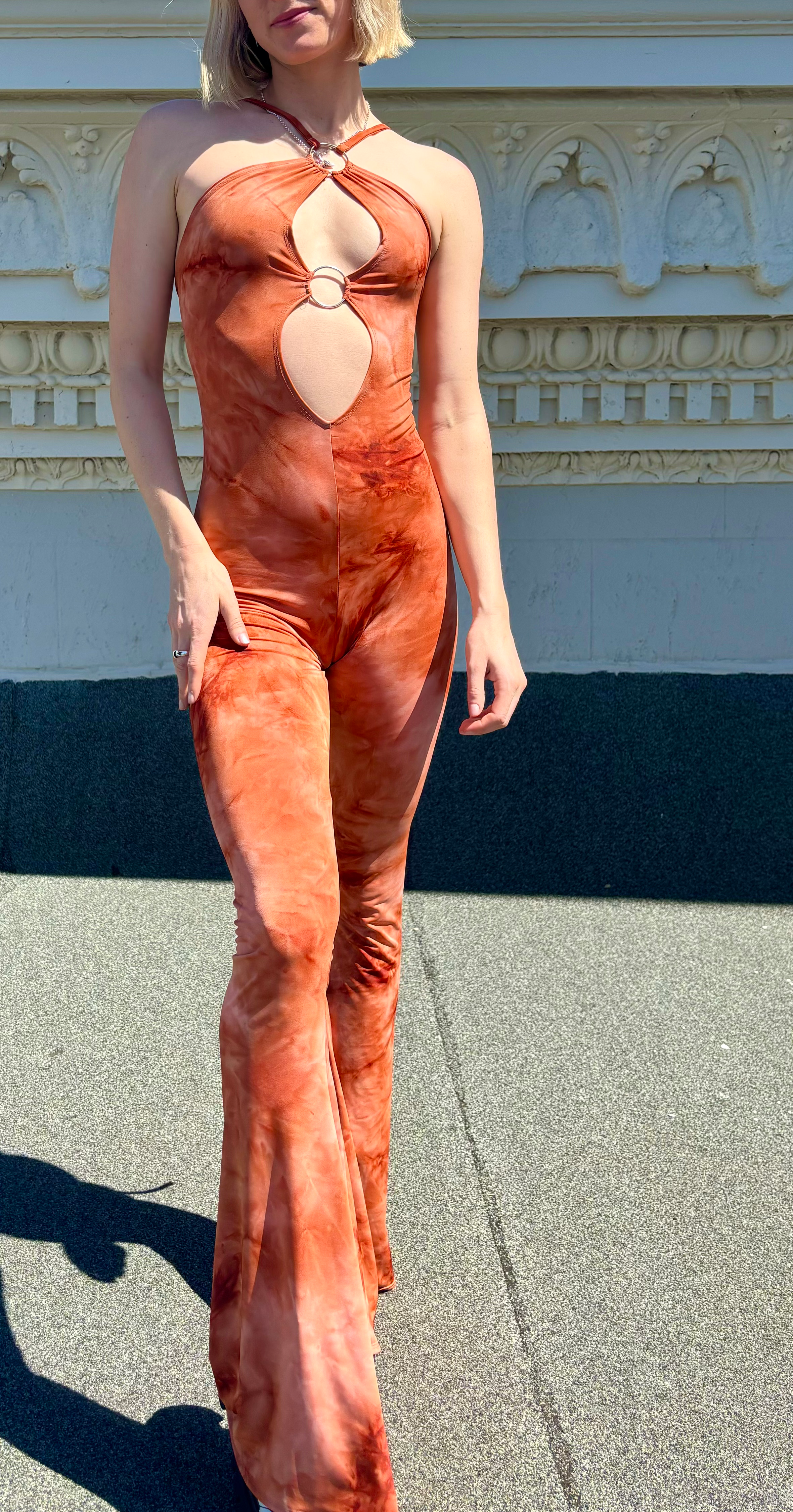 O-Ring Jumpsuit - Orange Tie Dye
