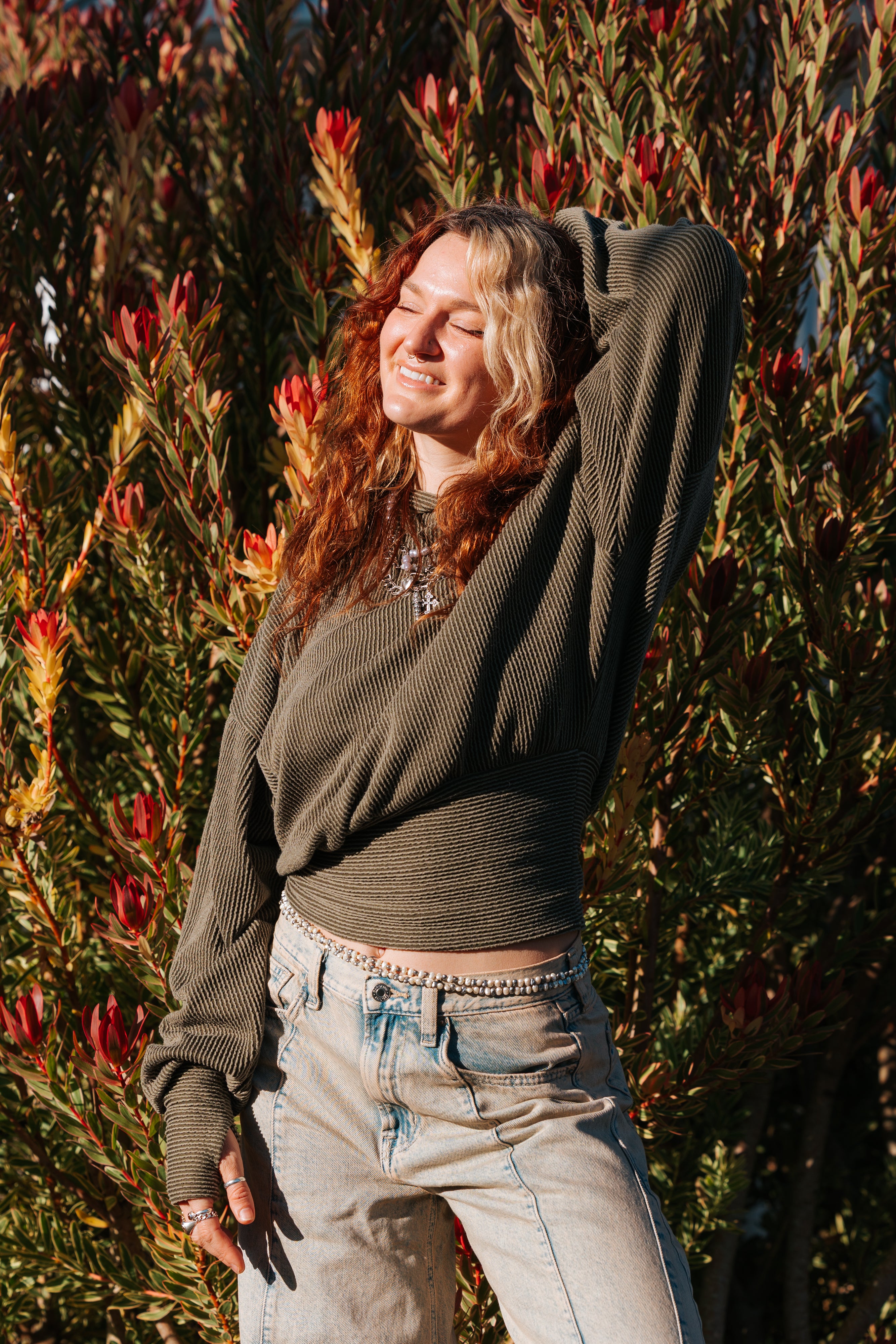 The Groove Hoodie is your new go-to cozy layer. Crafted from chunky ribbed fabric, it drapes into a relaxed, oversized silhouette with a softly cinched waistband and built-in fingerless cuffs. An easy, everyday essential for where ever your day takes you.